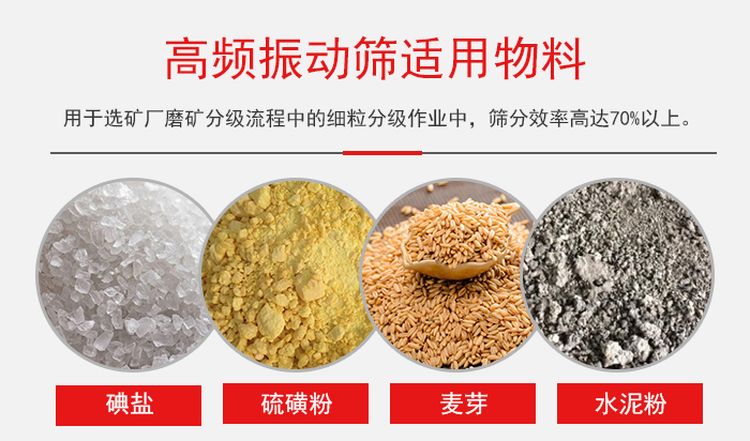 而高頻振動(dòng)篩用于選礦廠磨礦分級流程中的細(xì)粒分級作業(yè),在適當(dāng)?shù)慕o料濃度、給料粒度(-200目粒級含量)、以及需求篩下粒度與給料粒度之差小于30個(gè)百分點(diǎn)的條件下,篩分效率高達(dá)70%以上。