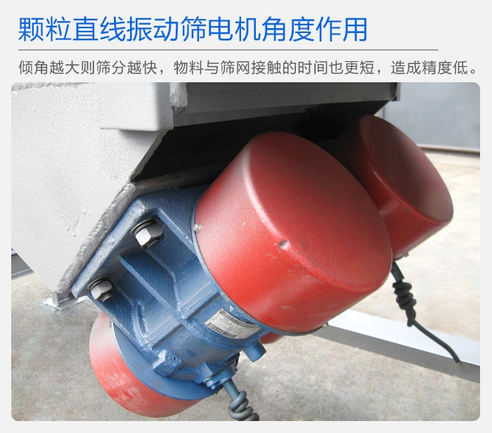 顆粒直線振動篩振動源主要來自振動電機(jī),振動電機(jī)在通電后想要產(chǎn)生震動,再利用兩端重錘,來產(chǎn)生不同的篩分效果。