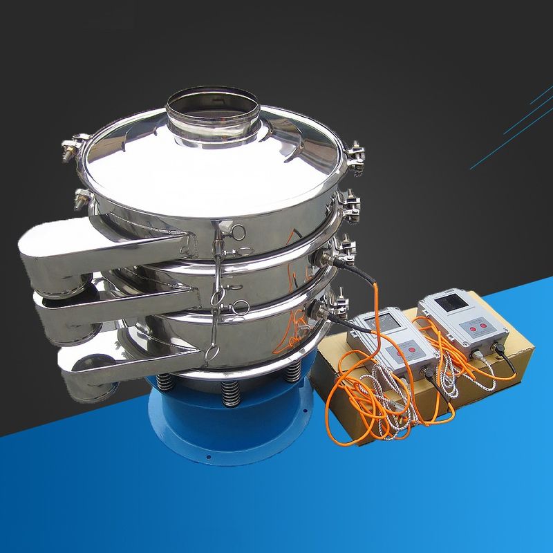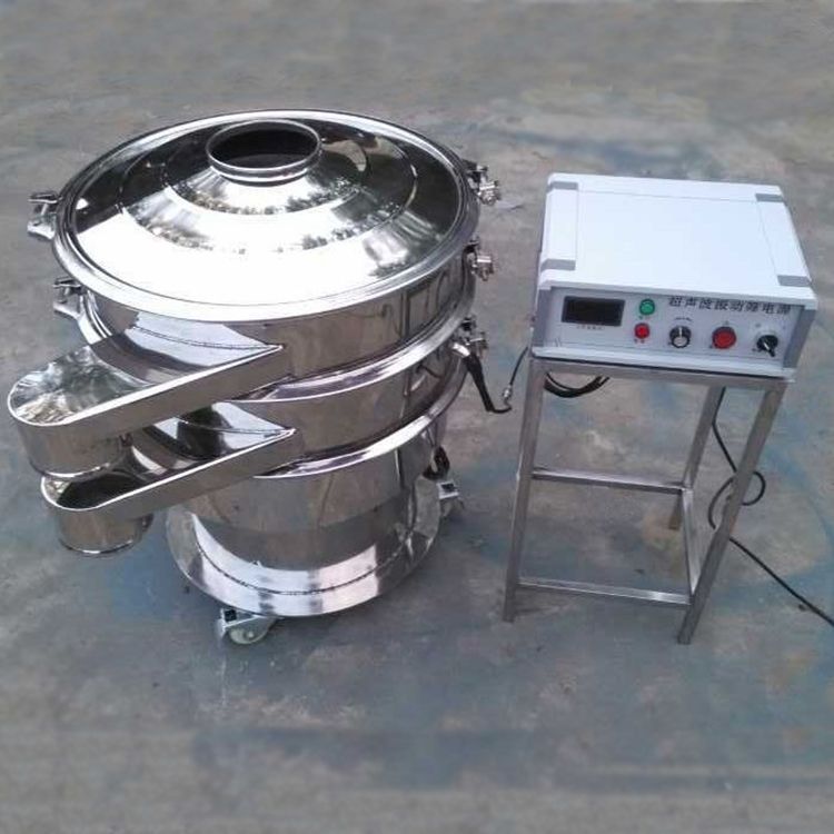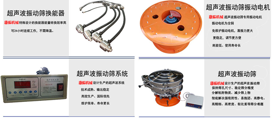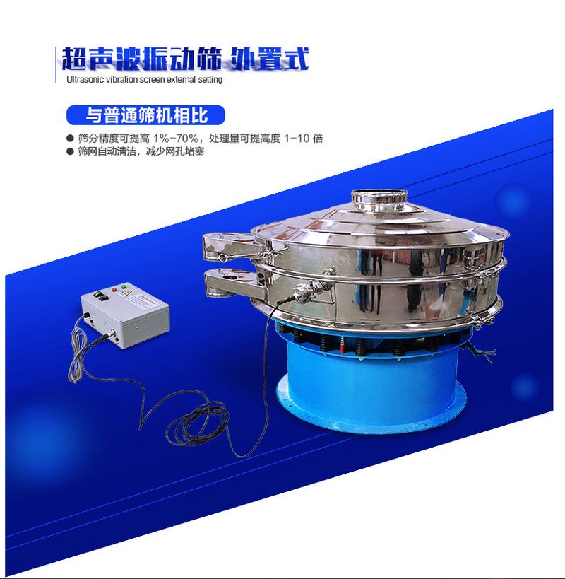 超聲波振動(dòng)篩是將220V、50Hz或110V、60Hz電能轉(zhuǎn)化為36KHz的高頻電能,輸入超聲換能器,將其變成36KHz機(jī)械振動(dòng),產(chǎn)生的功率超聲波使篩網(wǎng)作高頻振動(dòng)。篩網(wǎng)上的物料在作低頻旋振運(yùn)動(dòng)的同時(shí),疊加上超聲振動(dòng),既可防止網(wǎng)孔堵塞,又可使篩分機(jī)提高產(chǎn)量和質(zhì)量,從而達(dá)到快速篩分和清網(wǎng)的目的,使超微細(xì)粉篩分成為易事。該系統(tǒng)在傳統(tǒng)的振動(dòng)篩基礎(chǔ)上在篩網(wǎng)上引入一個(gè)低振幅、高頻率的超聲振動(dòng)波(機(jī)械波),以改變超微細(xì)分體的篩分性能。特別適合高附加值精細(xì)分體的用戶(hù)使用。