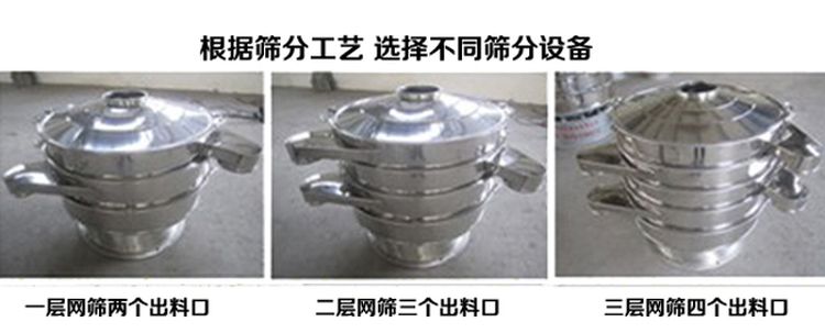 任何顆粒、粉末、粘液一定范圍內(nèi)均可篩選。篩分細至500目或0.028mm, 過濾小可至5微米。分級篩選,可篩一至五層篩網(wǎng),能同時進行二至六個等級的分選或過濾。