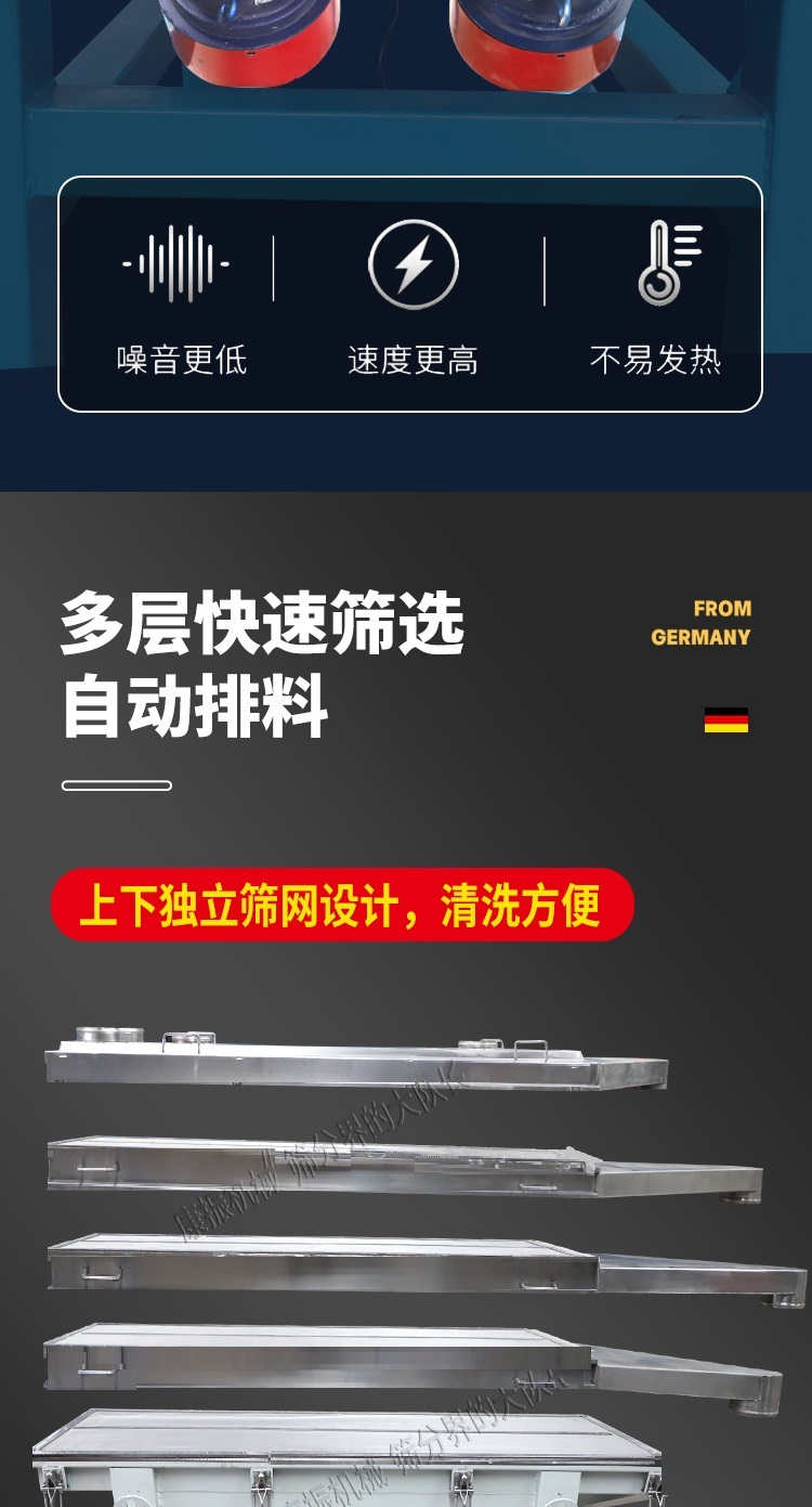 是以利用振動(dòng)電機(jī)激振作為振動(dòng)源,使物料在篩網(wǎng)上被拋起,同時(shí)受力向前做直線規(guī)則運(yùn)動(dòng),物料從給料機(jī)均勻地進(jìn)入篩分機(jī)的進(jìn)料口,通過多層篩網(wǎng)產(chǎn)生數(shù)種規(guī)格的篩上物、篩下物、從各自的出口排出。具有耗能低、產(chǎn)量高、結(jié)構(gòu)簡(jiǎn)單、易維修、全封閉結(jié)構(gòu),無粉塵溢散,自動(dòng)排料, 更適合于高產(chǎn)能流水線作業(yè)。
