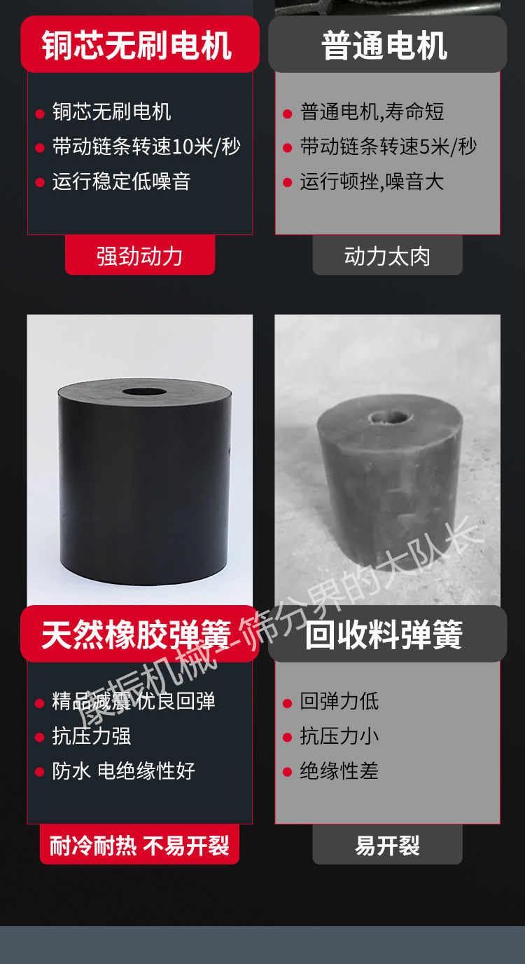 2、振蕩電機(jī)為激振源,噪聲低、耗電小、保護(hù)簡略。