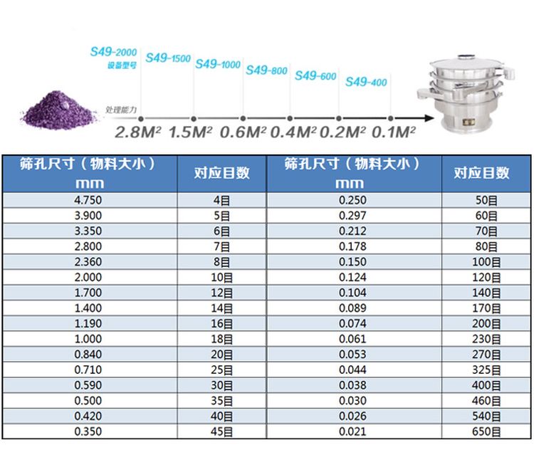 任何顆粒、粉末、粘液一定范圍內(nèi)均可篩選。篩分細(xì)至500目或0.028mm, 過(guò)濾小可至5微米。分級(jí)篩選,可篩一至五層篩網(wǎng),能同時(shí)進(jìn)行二至六個(gè)等級(jí)的分選或過(guò)濾。